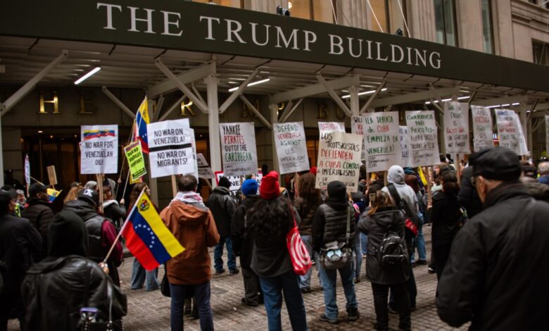 Demonstranti se shromažďují před budovou Trump na Manhattanu.Neil Constantine/NurPhoto/AP