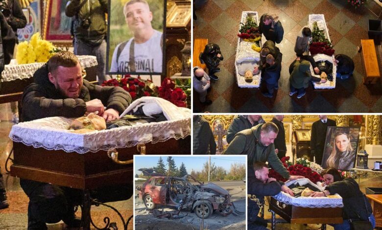 Duo jsou nejnovější novináři zabit ve válce na Ukrajiněs knězem Viktorem Zhyvchykem, který je oslavoval za jejich práci během pohřební služby bok po boku v klášteře sv. Michaela se zlatou kupolí.