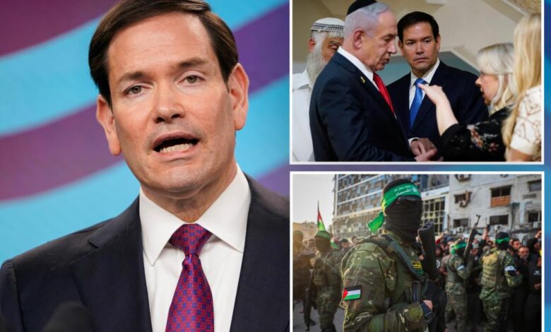 Bez vyjednaného urovnání Rubio řekl, že jediným způsobem, jak skončit izraelská válka, je, aby byl Hamas poražen, a pro všechny rukojmí v 7. října 2023 útok, který má být vrácen.