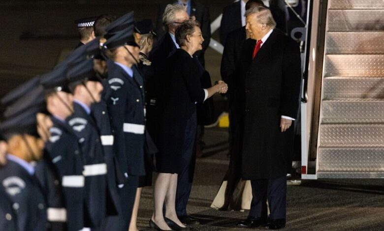 Yvette Cooper byl po pozdravu obviněn z pokrytectví Donald Trump za jeho státní návštěvu navzdory její minulé kritice. Ministr zahraničí dal americkému prezidentovi zdlouhavé handshake, když včera večer vystoupil na letišti v Londýně Stansted Air Force One.