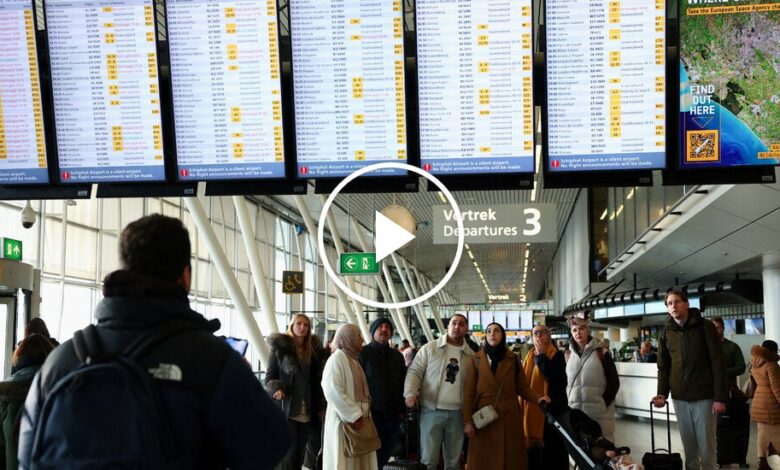 načteno nové video: Zimní podmínky způsobují stovky zrušení letů v Amsterdamu