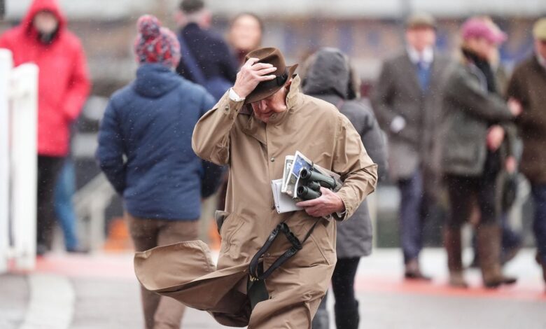 Silný déšť z Bouře Claudia ohrožuje druhý den setkání v Cheltenhamu