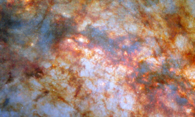 Galaxie doutníků tvoří hvězdy rychlostí puchýře, což vede k kolosálním super shlukům. Hobbleova vzácná data s vysokým rozlišením zachycuje tuto galaktickou podívanou s bezprecedentní jasností. Kredit: ESA/Hubble & NASA, WD Vacca