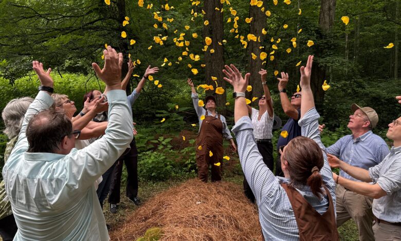 „Místo pozorování se aktivně účastní,“ řekl Phifer. „Zveme je, aby pomohli snížit tělo do hrobu lanami, vložit hrst nebo lopaty půdy do hrobu,“ a do kopce, borovicové větve a květiny. Pak by mohli opékat odešlou šampaňským nebo sdílet piknik potluck.