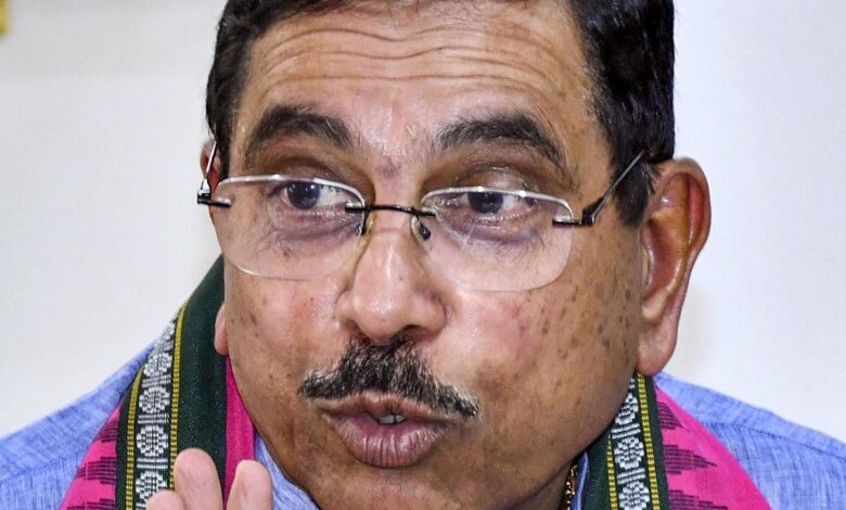 Ministr odborů Pralhad Joshi hovoří pro média. Soubor | Fotografický kredit: PTI