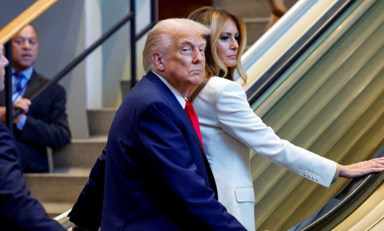 Návštěva amerického prezidenta v úterý úterý se dostala na nepříjemný start Eskalátor přestal pracovat ve chvíli, kdy on a první dáma Melania Trump, Položte jednu nohu na první krok pohybu.