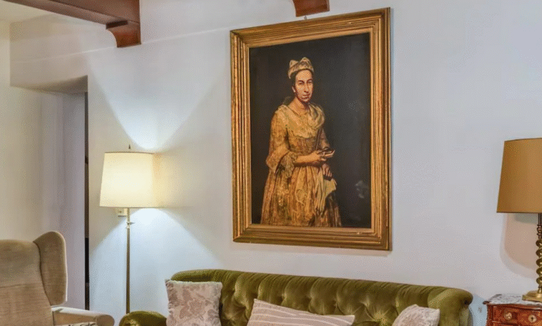 Na fotografii ženského obývacího pokoje zveřejněného v realitní reklamě byl portrét dámského kusu italského malíře Giuseppe Ghislandiho viděn nad osmi desetiletími nad pohovkou nad pohovkou.