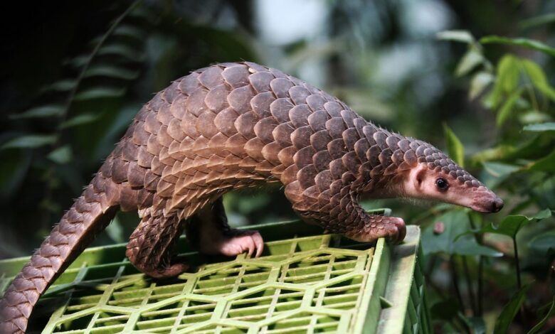 Pangolin vypuštěný zpět do volné přírody v Indonésii poté, co byl zadržen pašeráky.