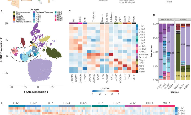 Jednobuněčný transkriptomický atlas lidského habenula. Kredit: American Journal of Psychiatry (2025). DOI: 10.1176/appi.ajp.20240776