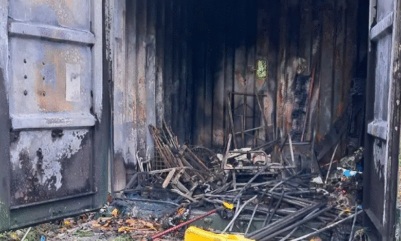Pan Parkins, ředitel Fishing for Minds a sociální pracovník rybářského klubu, řekl, že měl telefonát, že kontejnerová jednotka, kde bylo uloženo veškeré jejich vybavení, byla „spálena“.