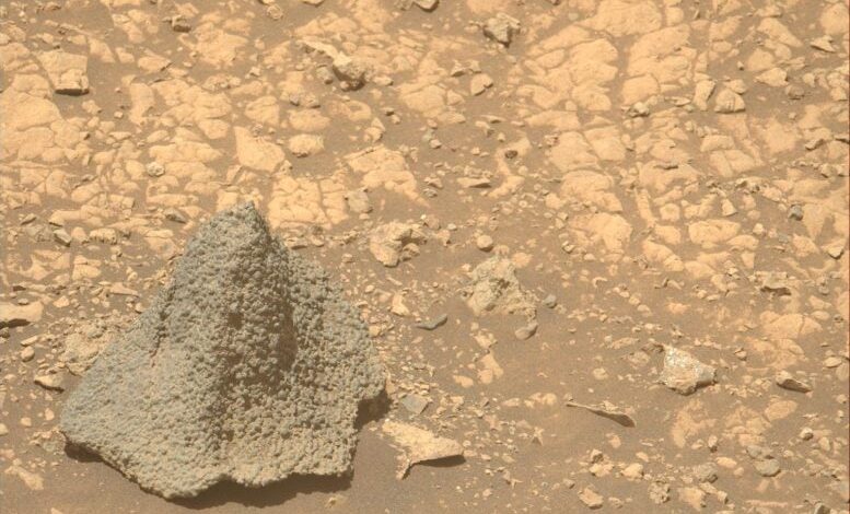 NASA vytrvalost Mars Rover skvrny bizarní skála ve tvaru helmy a tajemné megaripples