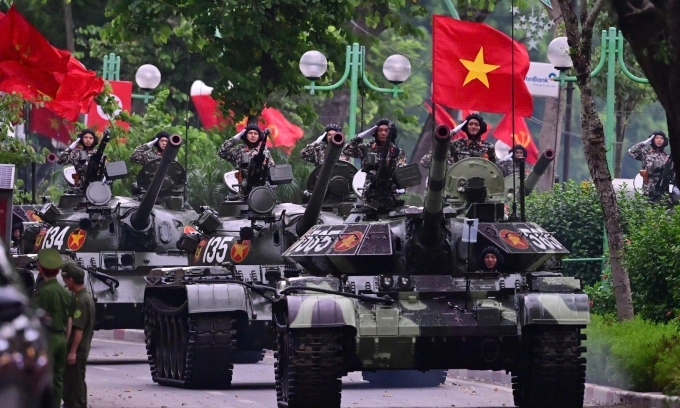 Tanky a vojenské konvoje se valí do Hanoiho BA Dinh Square pro National Day Parade zkoušku