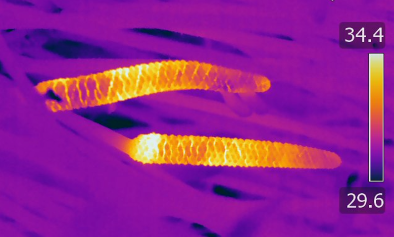Tepelný snímek dvou samčích šišek cykasu Zamia furfuracea. Šišky se při uvolňování pylu zahřívají. Některé oblasti čípků se mohou zahřívat rozdílně a tyto vzory slouží jako vodítka pro opylování.