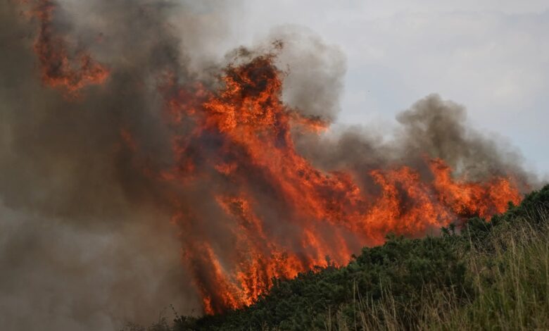 Oheň zuří na Langdale Moor v národním parku North York MoorsKredit: Thirská hasičská stanice
