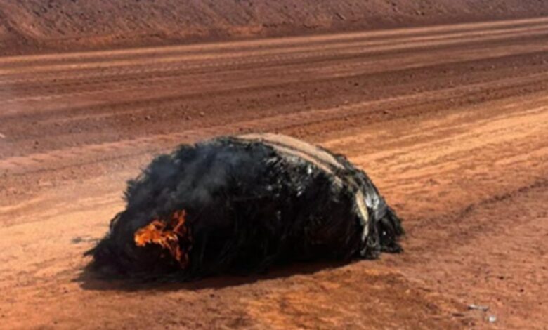 Ohořelá hrouda vesmírného odpadu z tajné čínské rakety, nalezená stále doutnající v australském vnitrozemí