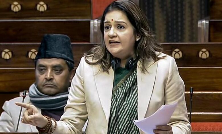 Shiv Sena (UBT) poslankyně Priyanka Chaturvedi. Soubor | Fotografické titulky: Sansad TV přes ANI