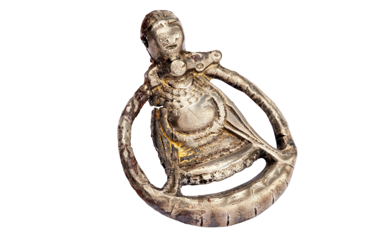 Tento kulatý stříbrný přívěsek byl nalezen v pohřbu elitní ženy z 10. století ve Švédsku v roce 1920 a je jediným známým vyobrazením těhotné ženy. Viking.