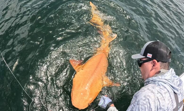 Rybáři objevují prvotřídní jasně oranžový žralok se dvěma vzácnými podmínkami v Karibiku