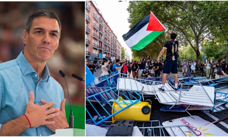 Španělský Pedro Sanchez vyžaduje, aby Izrael byl zakázán ve sportovních soutěžích – a zdvojnásobil „obdiv“ pro protestující Vuelta