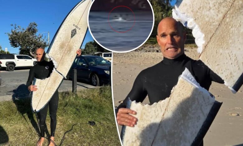 Surfer v Austrálii čelí děsivému útoku žraloků, který opustil jeho desku ve dvou kusech