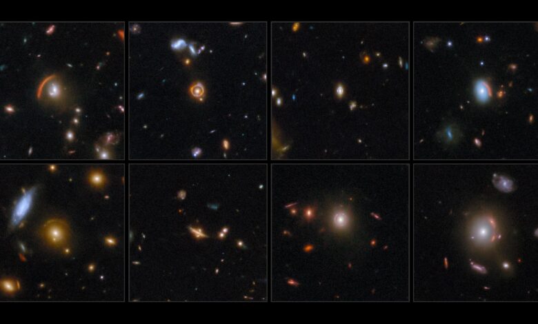 Jak dalekohledy se dívají do vesmíru, někdy vidí přírody, které zvětšují vzdálené objekty. Těchto osm galaxií nedávno zobrazovalo James Webb Space Telescope (Jwst) se jeví natažené, pokřivené nebo dokonce ohnuté do dokonalých kruhů.