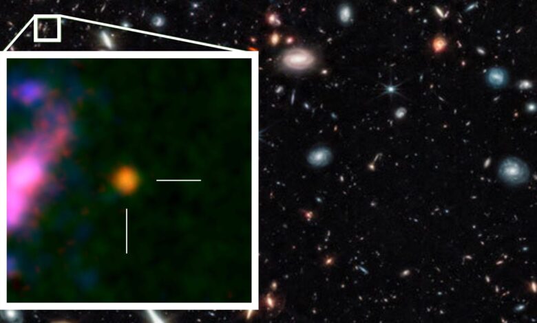 Astronomové používající Vesmírný dalekohled Jamese Webba (JWST) možná objevili nejvzdálenější supermasivní černou díru, jakou kdy viděli. Obrovský objekt, který hostí galaxie GHZ2, je tak daleko, že jej astronomové vidí, jako by to bylo pouhých 350 milionů let po velkém třesku.