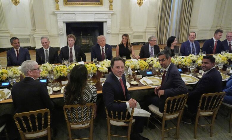 Byl to poslední příklad delikátní obousměrné námluvy mezi panem Trumpem a technologickými vůdci, z nichž několik zúčastnil se jeho inaugurace.