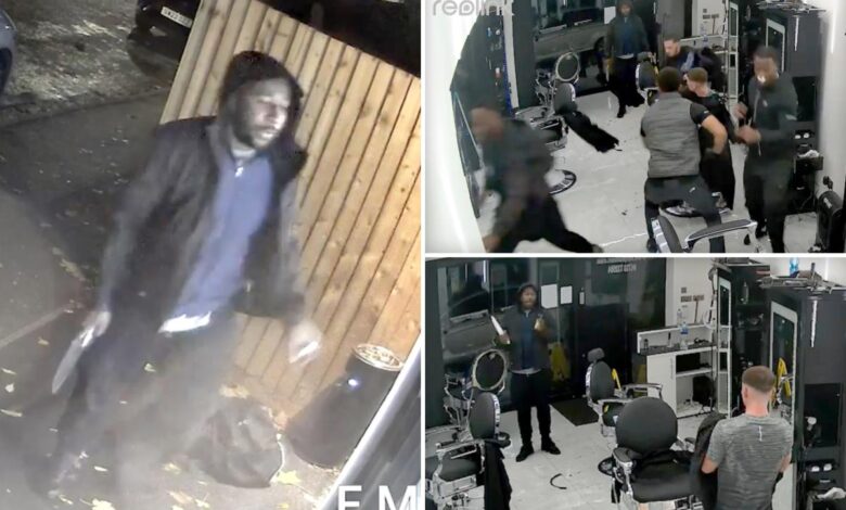 Děsivé sledovací video ukazuje okamžik Velké pobodání vlaku ve Velké Británii podezřelý vtrhl do holičství ozbrojený obrovským nožem – jen jeden den předtím, než údajně provedl své krvavé řádění ve vlaku směřujícím do Londýna.
