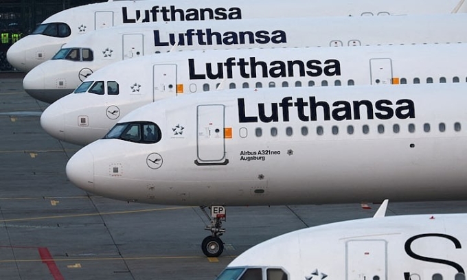 Letadla Lufthansy stojí zaparkovaná jako frankfurtské letiště v německém Frankfurtu, březen 2024. Foto: Reuters