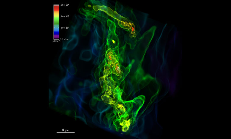 „S přítomností nadzvukových turbulence se oblak roztříštil do několika menších shluků, což místo toho vede k vytvoření několika méně masivních hvězd,“ hlavní výzkumný pracovník ChenVědecký pracovník na akademickém akademickém institutu astronomie a astrofyziky na Tchaj -wanu řekl e -mailem Livescience.