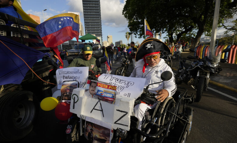 Motocyklisté v kostýmech pirátů projížděli Caracasem na protest proti americkému prezidentovi Donaldu Trumpovi poté, co Washington nařídil zabavení venezuelských ropných tankerů v rámci blokády zaměřené na plavidla spojená se sankcemi.