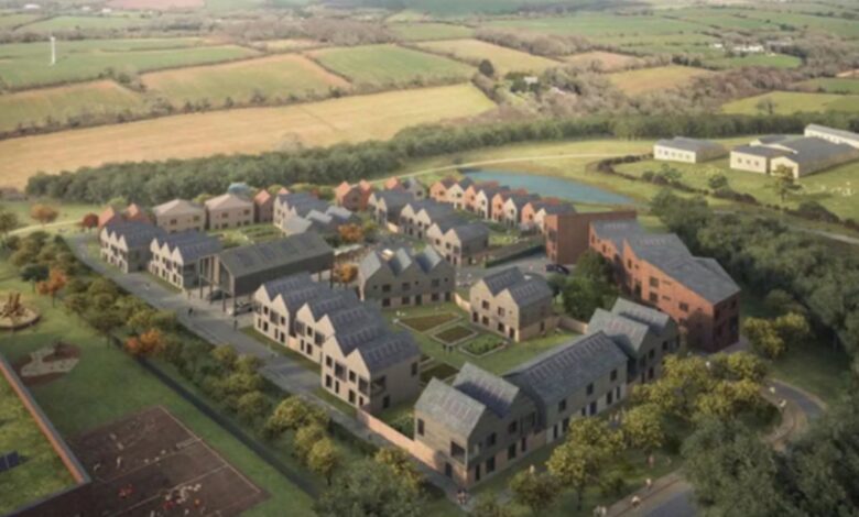 4000 vlajková loď nové vesnice je plánována na okraji Truro, Cornwall a navzdory zprávám je projekt o rok pozadu, radní říkají, že je na cestě.
