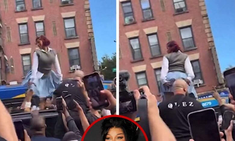 Cardi b Umístěte zadní konec do jízdy na vyskakovací akci v New Yorku … házejte ji zpět na černý SUV, zatímco kolem ní se rojily stovky fanoušků.