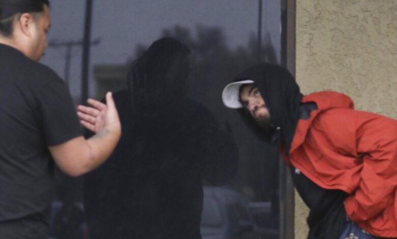 Obrázky ukazují, v jak hrozných situacích se Tylor potuluje před obchody na nákupním náměstí v Riverside v Kalifornii.