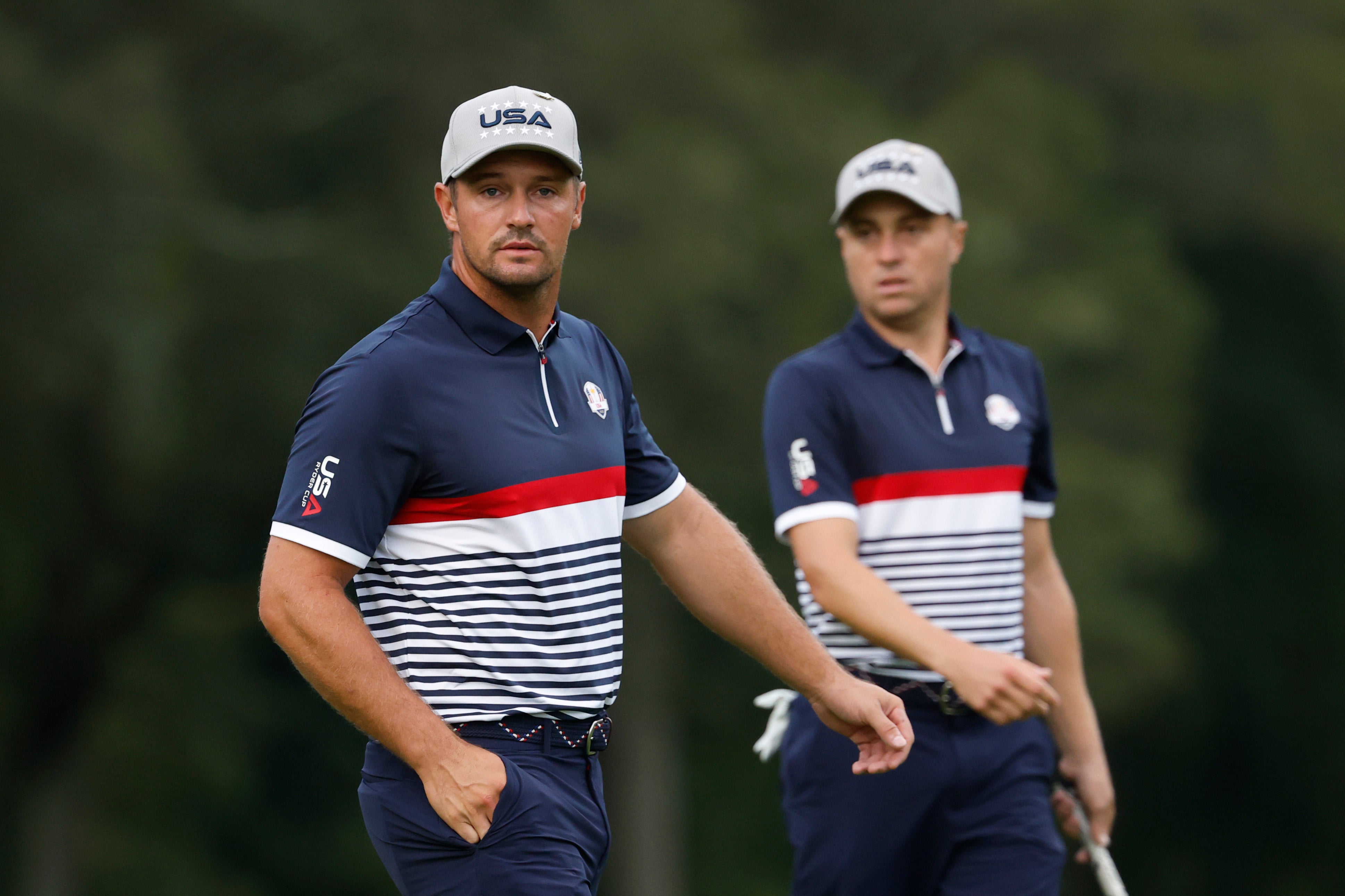 DeChambeau a Rahm chybí na třetím držení zeleně.