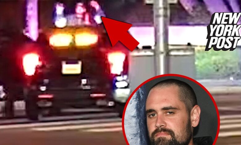 Sledovací záběry ukazují okamžik Nick Reiner byl rojován policií a zatčen za údajnou vraždu svých rodičů, Okrást a Michele Reinerová.