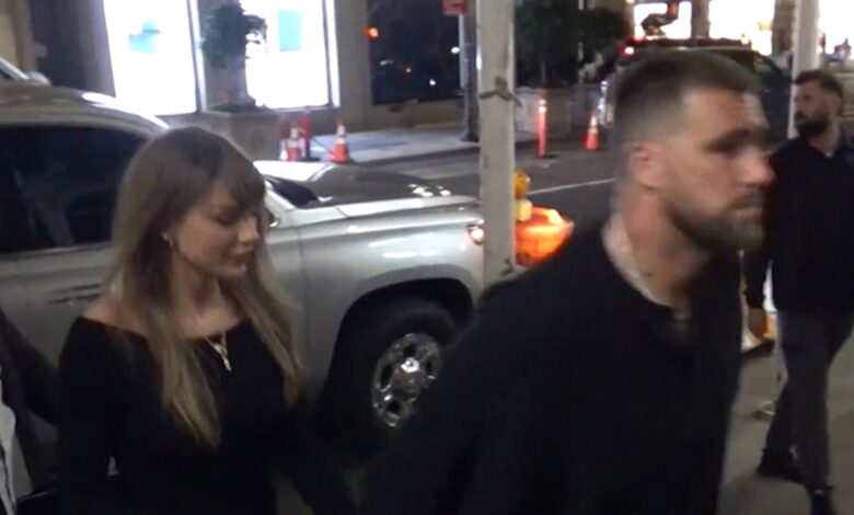 Travis Kelce užívá si týden volna od fotbalu, což znamená, že může držet bez penalizací … a plně využívá … Taylor Swift na cestě na romantickou večeři.