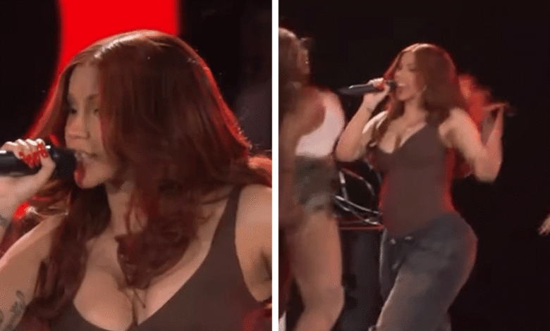 Těhotná žaludek Cardi B viditelný na pevném vrcholu na globálním občanském festivalu