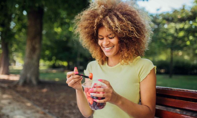 Snažte se vybírat čerstvé nebo mražené ovoce, kdykoli je to možné. Sušené a odšťavněné ovoce má často více cukru a příliš tepelně upravené ovoce může ztratit důležité živiny.