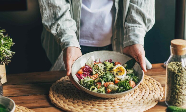 - Přidejte libové proteiny a zdravé tuky: Když je čas přidat bílkoviny na desku, zvolte namísto zpracovaného masa nakloněné možnosti, jako jsou ryby, kuře, vejce a nízkotučný jogurt. Rozhodněte se pro tuky z potravin, jako jsou avokádo, ořechy, semena a mastné ryby, a zároveň omezují nasycené a trans tuky.