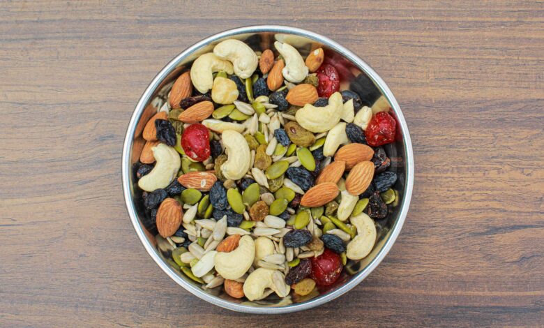 Hrst ořechů a semínek zvyšuje váš denní příjem kalorií a zároveň poskytuje vlákninu, bílkoviny a zdravé tuky. Když zkombinujete ořechy, jako jsou mandle, vlašské ořechy a pistácie v mixu, vytvoříte pohodlnou, kaloricky bohatou svačinu.
