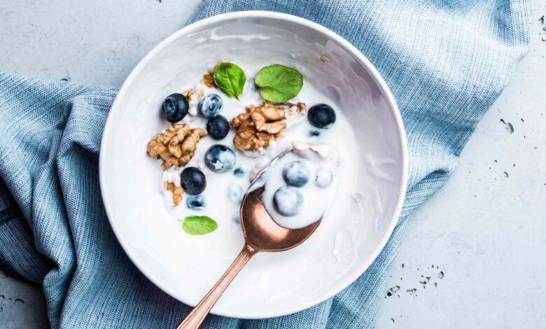 Výběr jogurtů s vyššími proteinovými, jako je řecký jogurt a Skyrkrémový islandský jogurt, Po jídle vám pomůže cítit se plnější, což může podporovat hubnutí.
