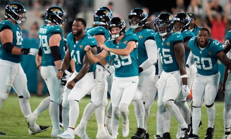 „Nemyslím si, že v prvním čtvrtletí nebo něco podobného bude nutně kopat 70 yardů,“ řekl Jaguars quarterback Trevor Lawrence. „Ale neuvěřitelné, že ho to vidím.