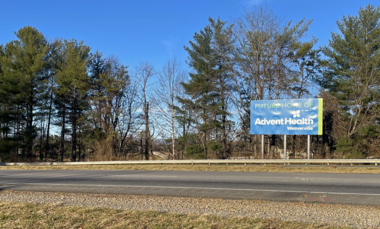 Ale jedinou známkou nové nemocnice je zatím 25akrové pole tříděné hlíny s cedulí vysazenou vedle dálnice s nápisem „BUDOUCÍ DOMOV AdventHealth Weaverville“.