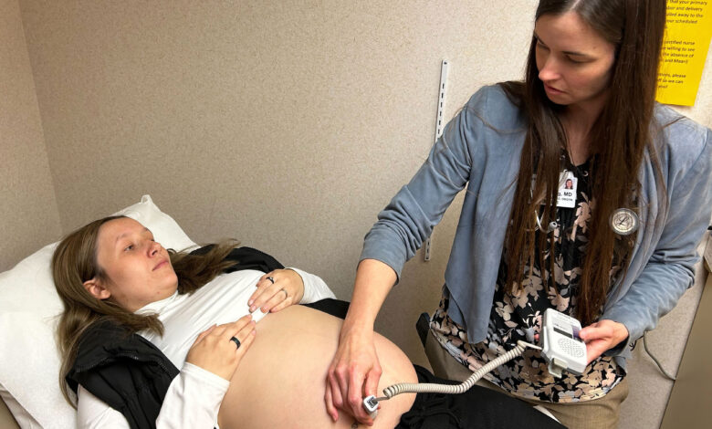 Během nedávného jmenování Lueking klouzal na ultrazvukové zařízení nad dělohou Hofeldt. Rytmus „woosh-woosh“ fetálního srdečního rytmu bušil přes monitor.