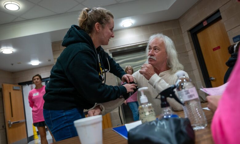 Muž si v říjnu 2023 nechal změřit krevní tlak na mobilní lékařské klinice Grundy ve Virginii. Vysoký krevní tlak je hlavním problémem, který postihuje téměř 120 milionů dospělých Američanů.