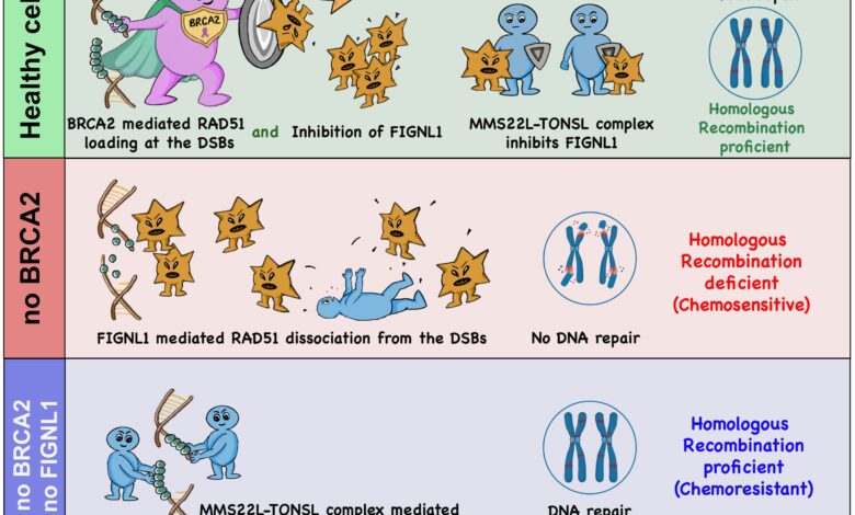 Funkce BRCA2 se ukazuje být jemnější. Ve zdravých buňkách BRCA2 a FIGNL1 spolupracují na udržení rovnováhy. BRCA2 pomáhá RAD51 vázat se na DNA, zatímco FIGNL1 jej odstraňuje. Společně doladí množství RAD51 potřebné k opravě poškození DNA.
