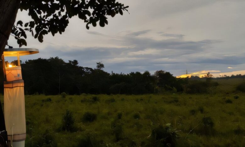 Světelná past na komáry na okraji lesa. Výzkum shromáždil vektory Anopheles a vzorky krve od obyvatel Cruzeiro do Sul v brazilském státě Acre. Kredit: Fredy Galvis/Amazônia+10