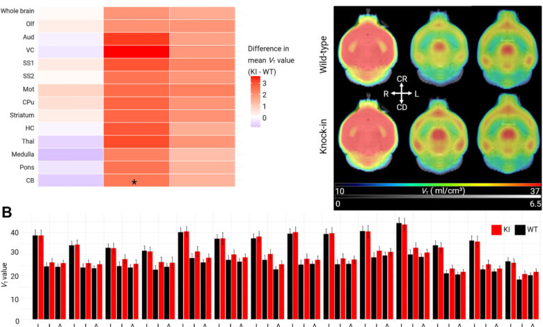 Věkově závislé genotypové rozdíly v regionálních (18F) SynVesT-1 VT (IDIF) hodnoty. Kredit: eBiomedicína (2025). DOI: 10.1016/j.ebiom.2025.105986