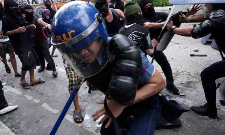Po střetech mezi policií a maskovanými protestujícími v An bylo zatčeno více než 200 lidí Demonstrace antikorupce Ve filipínském hlavním městě Manila.